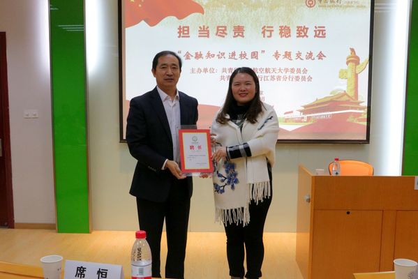 12月14日,体育投注平台 在A0302报告厅开展“职”上青云——金融大咖面对面主题讲座,此次活动邀请到中国银行江苏分行纪委书记席恒开展讲座授课。校团委书记王静、校团委副书记董羽参加了本次活动,活动由体育投注平台 党委副书记涂志宏主持。