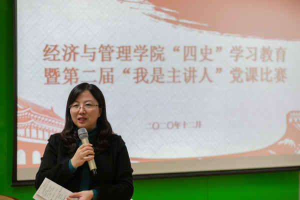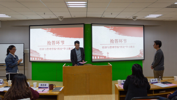 比赛过程中,14个党支部分别派出一名党员代表进行了党课展示。来自灰色系统支部的博士生邓飞对灰色系统理论进行了介绍,提出我国树立文化自信的必要性与重要性;本科生二支部傅歆芮带领大家回顾不同历史时期我党的少数民族政策以及在我党政策下各民族团结互助的民族关系,筑牢中华民族共同意识;本科生一支部许乃元对历史虚无主义进行了分析,联系生活实际指出历史虚无主义的形式以及其严重危害,提出我们应树立正确的历史观,坚持唯物主义。一节节内容丰富,讲解生动的党课,赢得在场观众的掌声,同时也引发了大家对党的理论知识,党员教育途径的新思考。
