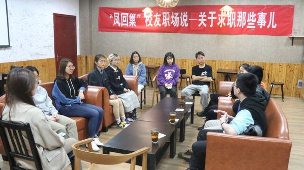 2021年4月16日晚,“凤回巢”校友职场说——关于求职那些事职场故事分享会于体育投注平台 楼咖啡厅成功举行。
