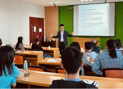 讲座主要从以下四个方面展开。首先,翁清雄详细介绍了情绪劳动的现实背景,并结合情绪劳动影响研究的发展现状,提出了聚焦负面情绪劳动影响研究的紧迫性和必要性。其次,基于资源保存理论,阐述了员工在管理负面情绪劳动时,深层扮演比表层扮演的情绪调节策略更为有效的研究假设。再次,翁清雄分享了他的研究思路和详细的研究设计,介绍了三个情绪劳动的实验场景(话务员面对顾客、上级面对下级、播音员面对观众)的实施过程,对比分析了实验者情绪的不同起点、方向和长度下实验结果的异同,揭示了深层扮演和表层扮演通过积极情感和消极情感对工作满意度和工作退缩的影响机理。最后,翁清雄就论文在投稿和修改中遇到的问题与大家进行了沟通和交流,并指出论文的写作和发表需要经过长期的雕琢和再创新,才能达到发表水平,指出科学研究贵在潜心投入和精心谋划。