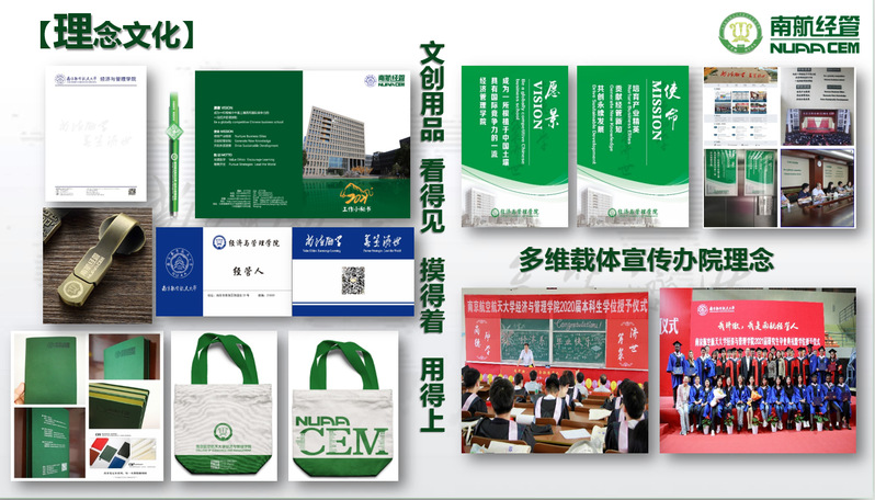 ——以理念文化为牵引,筑牢培根铸魂之基 作为一所从“改革开放”中走来的体育投注 ,体育投注 文化理念始终与国家需求同向同行、同频共振。体育投注 凝练确立了“成为一所根植于中国土壤具有国际竞争力的一流经济管理体育投注 ”的愿景、“尚德励学,筹策济世”的院训、“培育产业精英,贡献体育投注 新知,共创永续发展”的使命。通过教师的入职教育、学生的开学与毕业典礼、“凤回巢”校友返校等重要时间节点,利用体育投注 网站、官微、电子显示屏、院史馆等多维载体进行宣传,使得沉淀形成的这些办学理念入眼、入脑、入心、入行,成为全院师生的理想共识与行动纲领。设计开发以学习和办公用品为主的体育投注 文化创意产品,让“可以带走的体育投注 文化”,深入到全体师生、校友,使体育投注 文化看得见、摸得着、用得上。