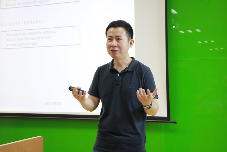 在此次学术交流活动中,贺伟首先作了题为“从想清楚到写清楚:组织管理研究写作的学习与感悟”的报告。报告中结合如何撰写规范的论文为大家进行了深入的讲解。分别从选题、破题、解题的三个步骤和角度全面展开,涉及到现象和理论等写作层面的方法与技巧;后面又从三个案例入手为大家展示如何明确理论贡献。