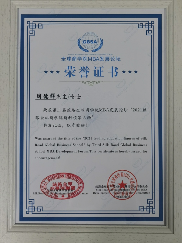 活动最后,为致敬一年以来辛勤耕耘、推动中国商科教育不断前行做出卓越贡献的榜样力量,评选出项目、个人奖项若干,体育投注平台 MBA项目获得“2021丝路全球商体育投注平台 最具品牌价值MBA项目”、体育投注平台 院长、长江学者特聘教授周德群获得“2021丝路全球商体育投注平台 商科教育领军人物”、体育投注平台 副院长王子龙获得“2021丝路全球商体育投注平台 最受喜爱老师奖”、MBA校友龚怡获得“2021丝路全球商体育投注平台 MBA校友创业企业新星”、学员许正蓓、袁梅、郑启旺获得“2021丝路全球商体育投注平台 MBA新秀奖”。
