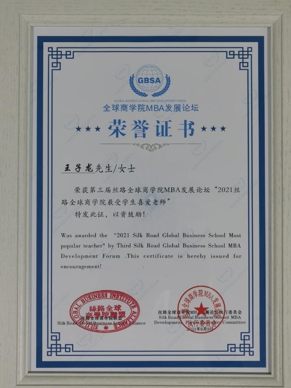 副院长王子龙获得“2021丝路全球商体育投注平台