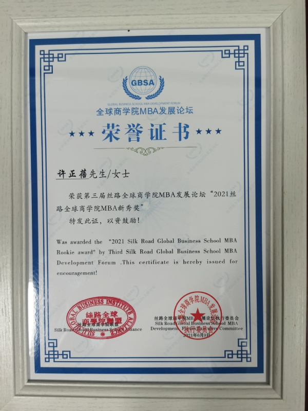 学员许正蓓获得“2021丝路全球商体育投注平台