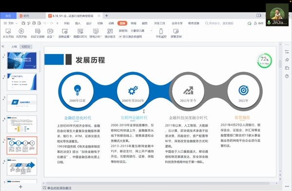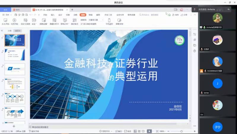 6月16日晚上,华创证券产业金融部执行总经理金佳佳应体育投注平台 信息管理与电子商务研究所的邀请,通过腾讯会议作了“证券行业的金融科技问题分析”报告,体育投注平台 教授米传民以及诸多学生聆听了此次报告,本次报告由米传民主持。