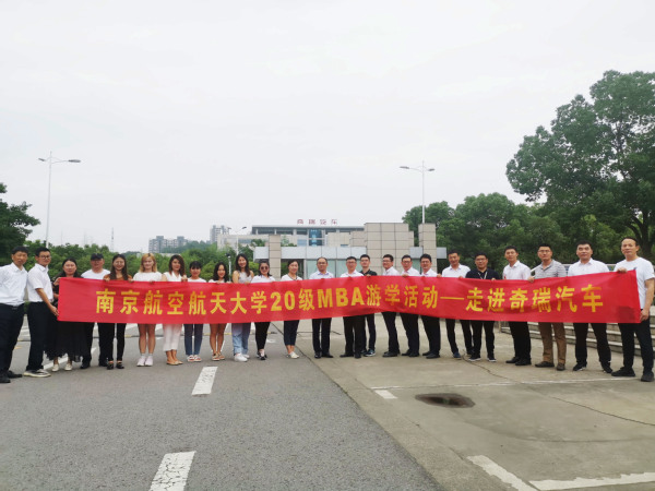 2021年6月20日,体育投注平台 MBA教育中心2020级国际商务班走进奇瑞汽车,举行了“致敬中国智造,领略科技魅力”的主题研学活动。奇瑞大学执行校长毕全国、体育投注平台 副院长王子龙教授、班主任顾海虹老师带队参访。