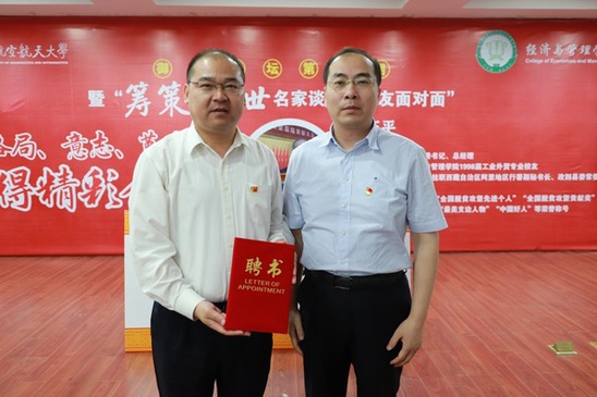 最后,涂志宏希望同学们把握好在南航学习的宝贵时光,从段玉平校友的讲座中汲取智慧力量,以“稳、实、和、耐、勤”为修身治学的原则,刻苦学习钻研,投身强国伟业。