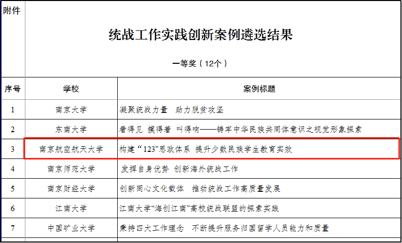 近期,江苏省委教育工委公布了“同心向党•教育有我”统战工作实践创新案例遴选结果,体育投注平台 党委报送的创新案例“构建123思政体系 提升少数民族学生教育实效”创新案例获一等奖(全省高校共12项)。