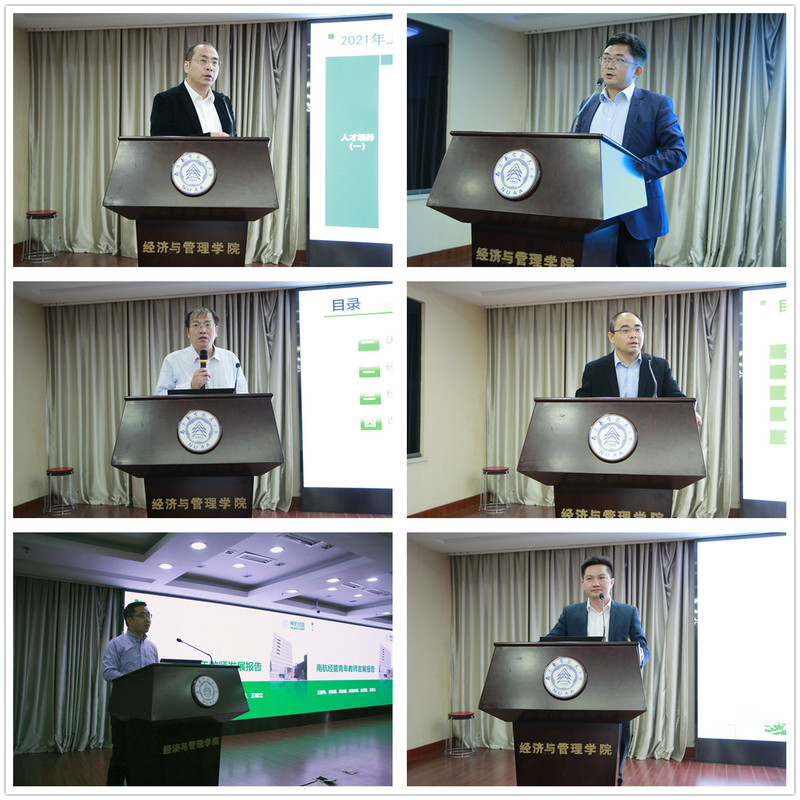 随后,院领导班子成员围绕各自分管的重点工作作专题报告:王群伟报告了青年教师发展计划;邓晶提出了体育投注平台 新文科建设方案;谢乃明提出高质量研究生教育教学行动计划;王子龙作了MBA教育中心办学水平提升方案报告。