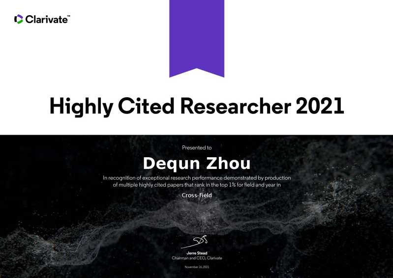 2021年11月16日,科睿唯安公布了2021年度“高被引科学家”名单。体育投注平台 周德群教授入选跨学科领域(Cross-Field)高被引科学家名单,此次是周德群教授连续第三年入选该榜单。