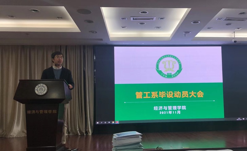 2021年11月29日,管理科学与工程系在体育投注平台 A0305召开,管理科学与工程系系主任米传民教授、管工系教学督导沈洋副教授、系副主任何沙玮副教授、虞先玉副教授等系专业教师及管工系全体大四学生参加了会议。