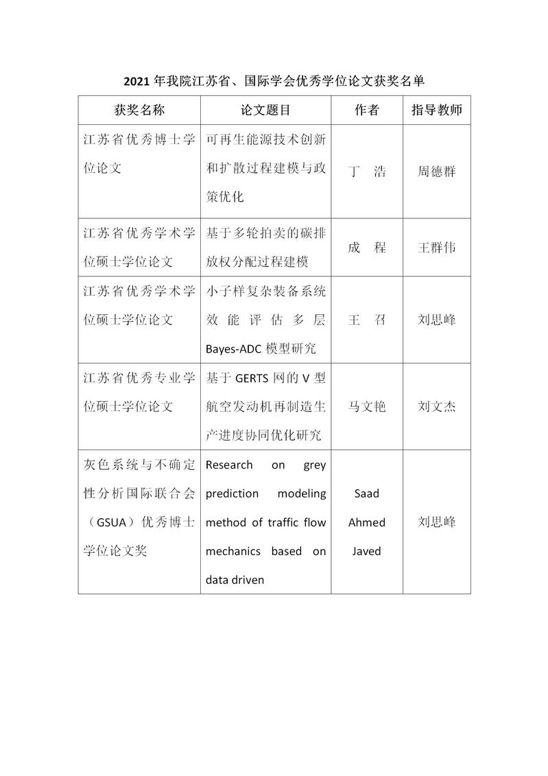 近日,2021年江苏省优秀博士硕士学位论文、国际学会优秀学位论文获奖名单陆续公布。体育投注平台 师生表现突出,斩获2021年度江苏省优秀博士学位论文1篇、江苏省优秀学术学位硕士学位论文2篇、江苏省优秀专业学位硕士学位论文1篇、灰色系统与不确定性分析国际联合会优秀博士学位论文1篇。