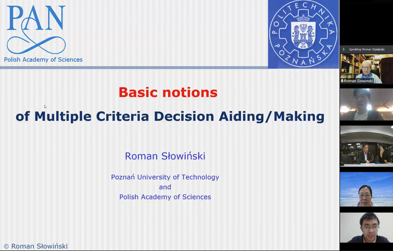 为深度推进国际交流和师生全面发展,11月5日-12月4日,波兰科体育投注平台 副院长、波兰科体育投注平台 院士、欧洲科体育投注平台 院士、IEEE院士、国际粗糙集学会院士、波兰信息科体育投注平台 主席、《European Journal of Operational Research》主编Roman Słowiński教授受体育投注平台 智能决策与风险分析研究所邀请,在腾讯会议作题为“Basic notions of Multiple Criteria Decision Aiding / Making”的系列讲座。国际合作处处长张卓、国际合作处副处长沈敏、体育投注平台 教授徐海燕出席本次活动。