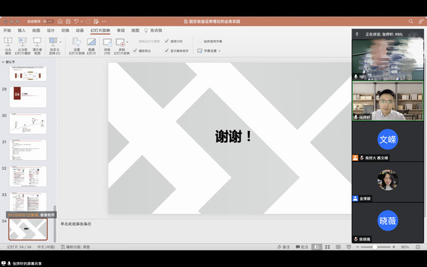 5月26日上午,中证信用增进股份有限公司业务副总裁张烨轩应金融研究所的邀请,通过腾讯会议为体育投注平台 师生作了题为“固定收益证券理论的业务实践”的报告,本次报告由金融研究所的金倩颖副教授主持,本硕博80余名同学参加了此次讲座。