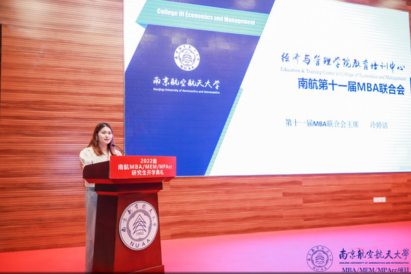 MBA联合会主席冷婷洁为新生们详细介绍了联合会的组织架构和活动开展情况。