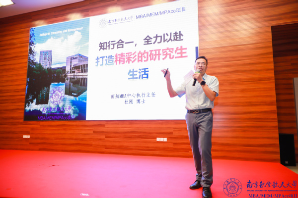 MBA教育中心执行主任杜刚博士为所有新生分享了《全力以赴,知行合一,打造精彩的研究生生活》,他认为拼搏精神尤其重要,与改变世界比较起来,改变自己才容易一些。期待所有新生不断奋进,不断努力,在体育投注平台 在职研究生的舞台上绽放自我,不断前行。