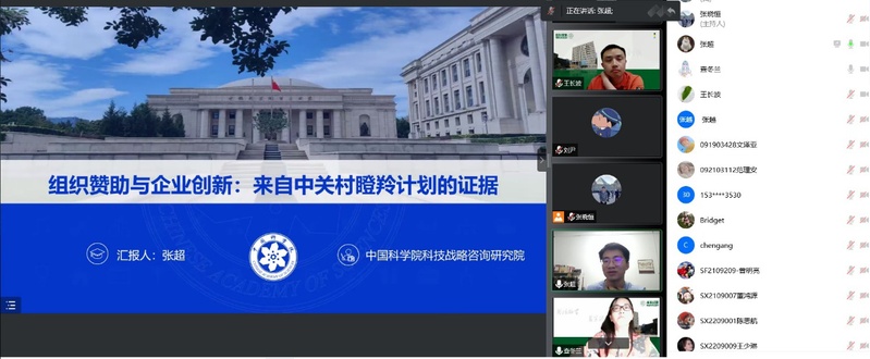 9月23日,中国科体育投注平台 科技战略咨询研究院博士后张超应区域经济与产业经济研究所邀请,在线上为体育投注平台 师生作了题为“组织赞助与企业创新:来自中关村的瞪羚计划的证据”的精彩报告。本次报告由查冬兰副院长主持,相关教师、研究生和本科生参加了此次学术报告活动。