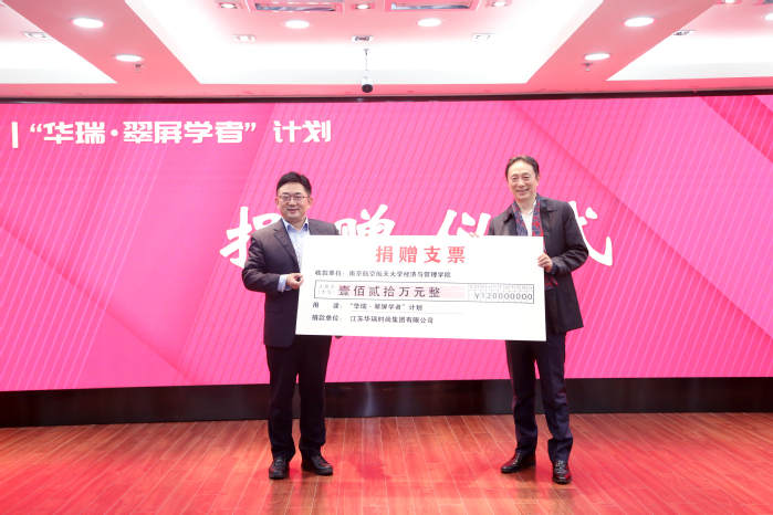 随后进行捐赠仪式,周德群代表体育投注平台 接受康宜华院友的捐赠,苏州向康宜华院友颁发捐赠证书。江苏华瑞时尚集团向体育投注平台 捐款壹佰贰拾万元整,专项用于“华瑞•翠屏学者”计划。