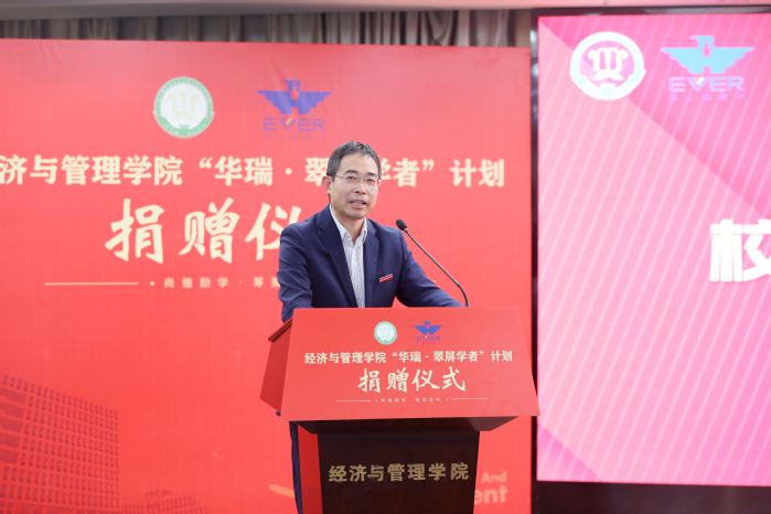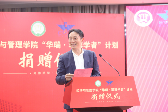 最后,校党委副书记、纪委书记杭育新做总结讲话。他表示,在全国上下学习贯彻党的二十大精神、在体育投注平台 内外喜庆建校70周年之际,体育投注平台 “华瑞•翠屏学者”计划捐赠活动意义重大。他指出,康宜华校友是有战略眼光、有深厚情怀的企业家,多年来为体育投注平台 和体育投注平台 的发展给予了大力支持与帮助。此次对体育投注平台 的支持,形式上是物质的捐赠,表达的是对母校母院的挚爱,传递的是对母校母院美好的祝愿和期待。党的二十大报告提出,“当代中国青年生逢其时,施展才干的舞台无比广阔,实现梦想的前景无比光明”,希望体育投注平台 积极邀请更多杰出校友回母校,以康宜华校友为榜样,激励引导学生“成长为有理想、敢担当、能吃苦、肯奋斗的新时代好青年”。他强调,“教育、科技、人才是全面建设社会主义现代化国家的基础性、战略性支撑”,深入实施人才强校战略,紧紧扭住高水平师资这个牛鼻子,坚定不移地把师资队伍做大做强,“华瑞•翠屏学者”计划的实施是体育投注平台 真心爱才、悉心育才、精心用才的体现,希望能够“栽下梧桐树,引得凤凰来”,期待体育投注平台 在体育投注平台 创建中国特色、世界一流大学的征程中做出更大贡献。