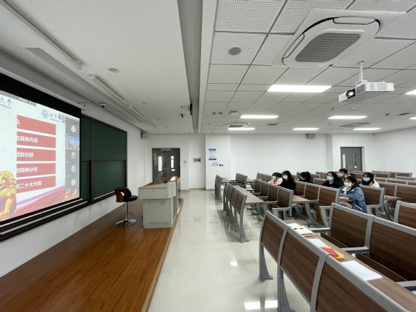 支部书记蔡雪姣开展了以《党的二十大报告速览》、《党的二十大,奋斗新征程》为主题的集中党课学习。