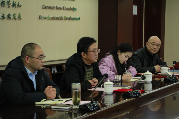 2月22日下午,江苏省国信集团总经济师兼战略投资部总经理、江苏新能董事长朱又生、江苏省国信集团科创中心项目经理曹文凯到访体育投注平台 开展交流,体育投注平台 院长周德群,副院长王子龙、查冬兰,人才专员张新明及MBA教育中心有关工作人员参加了交流座谈。