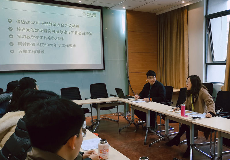 胡苹首先对三次会议精神进行了领学。她指出,体育投注平台 干部教师大会、党的建设暨党风廉政建设工作会和校学生工作会为我们指明了2023年工作的方向,一要提高政治站位,从体育投注平台 工作大局出发,结合体育投注平台 实际,有的放矢、创造性地谋划工作,增强工作的系统性。二要聚焦工作重点难点,坚持问题导向,花大力气解决好学风问题和就业问题,将思想引领与解决学生突出问题紧密结合,增强工作的有效性。三要坚持创新驱动发展,探索本研贯通、一体推动的思政模式,持续打造思政工作品牌,增强工作的协同性。四要不折不扣抓落实,坚持“理论学习、深入学生、研用一体”,必须结合体育投注平台 实际落实落细,拿出真招实招,增强工作的针对性。最后,她强调,“牢记育人之责、落实育人之任、抓好育人之能”,必须时刻牢记育人初心使命,必须带着思考、感情和责任工作,为培养一流的经济与管理类人才做出更大的贡献。