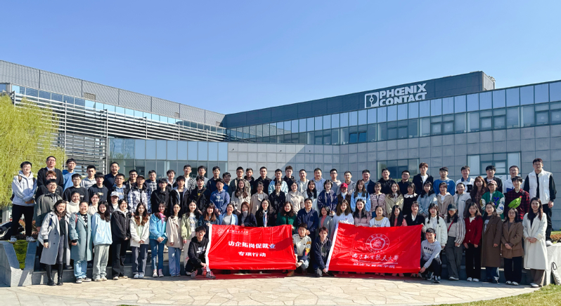 为全面深化信管本科教育综合改革,完善产业需求导向的人才培养模式,促进人才培养供给侧和产业发展需求侧结构要素全方位融合,进一步和产业界交流,加强信管专业课程建设应用,提升产教融合程度及学习贯彻党的二十大精神,扎实落实党中央、国务院“稳就业”、“保就业”决策部署,拓展就业渠道、深化校企合作、强化供需对接,从需求端完善人才培养体系,3月12日下午,体育投注平台 党委副书记胡苹、管理科学与工程系主任米传民,信管专任教师、辅导员代表以及信管专业本科生、研究生70余人赴南京菲尼克斯电气公司开展“信管产教融合课程建设“和“访企拓岗促就业”走访交流活动。
