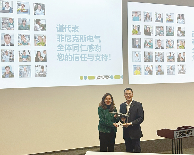 随后,南京菲尼克斯电气公司3T融合解决方案工程师付海燕分享了菲尼克斯信息化建设的数字化转型以及数字化卓越运营体系。接着,南京菲尼克斯电气公司员工沟通及校企合作部经理易书波介绍了校企合作机制与员工培养方案,他介绍到,截止目前体育投注平台 已有40余名优秀校友加入菲尼克斯,在不同的部门、岗位贡献体育投注平台 智慧。