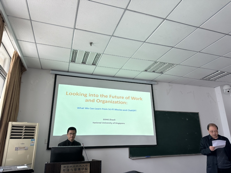 3月29日,应体育投注平台 人力资源管理研究所、江苏省人力资源发展研究基地和中国员工关系管理研究省优秀创新团队邀请,新加坡国立大学商体育投注平台 教授宋照礼在体育投注平台 704会议室为体育投注平台 师生作了题为“Looking into the future: What can we learn from Sci-Fi movies and ChatGPT”的精彩学术报告。本次讲座由教授胡恩华主持,相关教师以及博士生和硕士生参加了这次专题讲座。