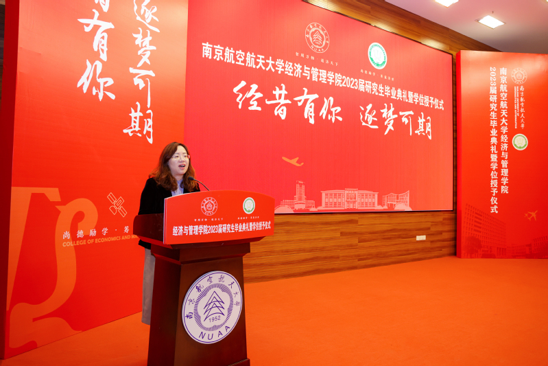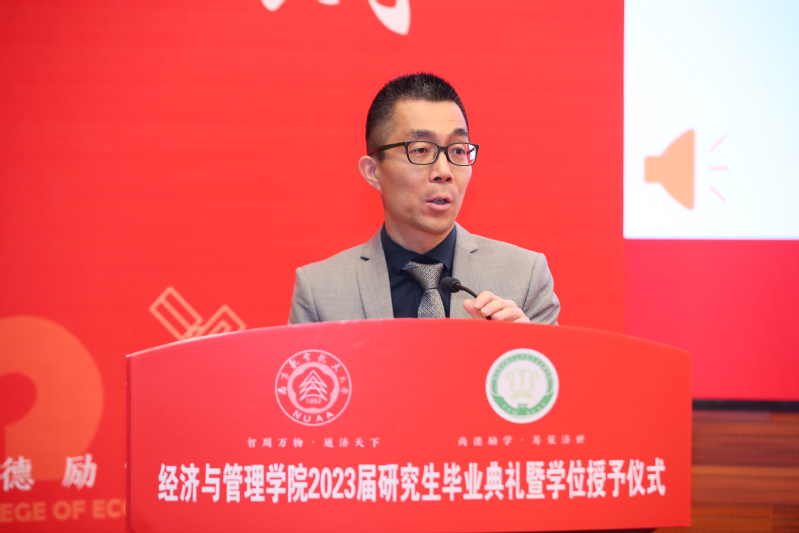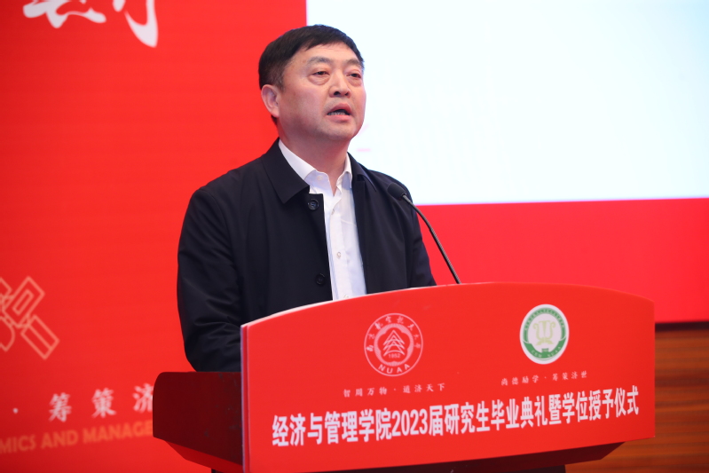 4月7日下午,体育投注平台 2023届研究生毕业典礼暨学位授予仪式在将军路校区一号楼报告厅举行。院党委书记苏州,院长周德群,副院长王子龙、谢乃明、查冬兰,院党委副书记胡苹,院学位评定委员会委员,导师代表,毕业生亲友出席典礼,与2023届全体毕业生共同分享这一难忘的美好时刻。典礼由院党委副书记胡苹主持。