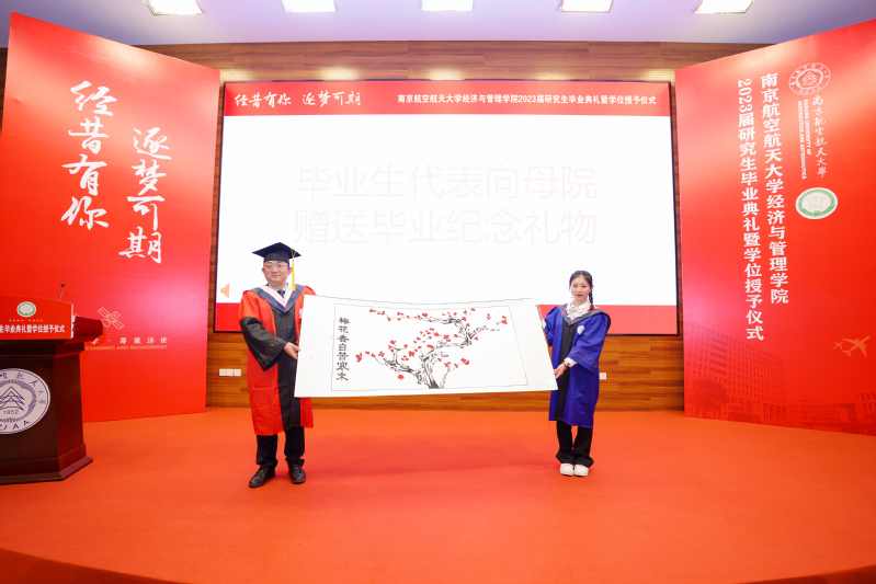典礼上,全体毕业研究生为体育投注平台 送上了一份特殊的礼物——由体育投注平台 全体研究生一同创作的手印梅花图。梅花香自苦寒来,毕业生们用手印的点点红梅来回忆他们奋斗的青春岁月,也饱含了同学们对母院的感激,更代表了庄重的承诺,他们将接过体育投注平台 体育投注平台 人的接力棒,“强特色,争一流,体育投注平台 梦,代相传”将始终烙印在他们心中。周德群院长代表体育投注平台 接受毕业生赠礼。