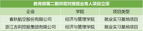 近日,教育部高校学生司公布了第二期供需对接育人项目立项名单,体育投注平台 与春秋航空股份有限公司、浙江吉利控股集团有限公司达成就业实习基地项目。