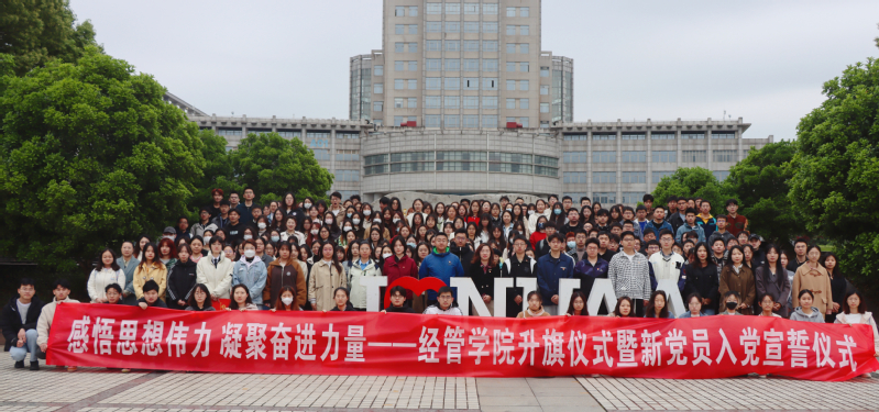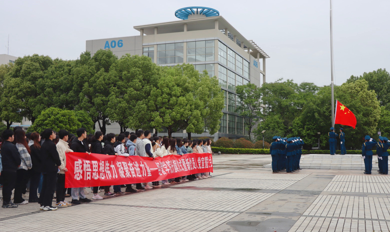 为深入开展习近平新时代中国特色社会主义思想主题教育,体育投注平台 于4月24日在国旗广场举行“感悟思想伟力 凝聚奋进力量”升旗仪式暨新党员入党宣誓仪式。体育投注平台 党委副书记胡苹、辅导员代表、全体学生党员、发展对象、入党积极分子参加活动。