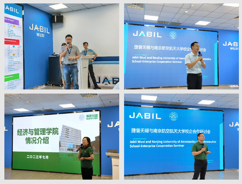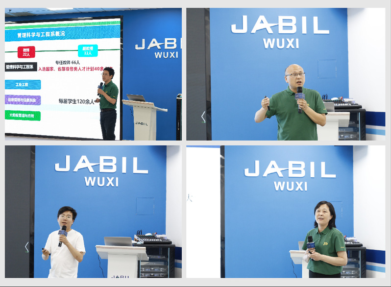 为加深校企双方了解,探寻校企合作方案,捷普无锡各部门领导与体育投注平台 教师开展了精彩绝伦的科研探讨。捷普无锡林登峰、孙家明、王云安、黄苑杰、潘召泉五位高级经理分别对工程、物料、质量、研发、人事等部门功能职责及架构、当前工作重点及未来转型规划等进行具体介绍。