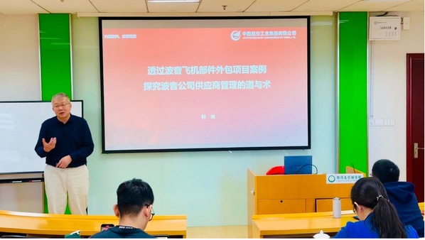 10月20日下午,中国航空工业集团有限公司首席技术专家韩维主任(国家专家库民用飞机专家,体育投注平台 兼职教授,曾任成都飞机工业(集团)有限责任公司董事、副总经理、总法律顾问、科技委副主任等),受体育投注平台 邀请为师生们带来了一场题为“透过波音飞机部件外包项目案例探究波音公司供应商管理的道与术”的学术报告。体育投注平台 副院长周志鹏主持讲座,陈剑、赵亚普、徐志涛、钱玲飞、姚斐思等教师代表、硕/博研究生现场聆听了报告。