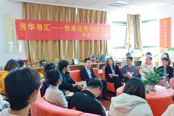 很幸运能参加此次芳华书会交流活动,近距离“追星”成功。习近平总书记指出:“中华优秀传统文化是中华民族的精神命脉”。中华优秀传统文化承载着民族记忆和民族精神,是我们增强文化自觉、坚定文化自信的强大底气。而在今天的分享会上,徐川书记用幽默的语言和形象的解说,深入剖析了文化自信的内在机理,生动讲述了为什么要学传统文化、怎么学传统文化,也为我们上了一堂“入脑入心”的思政课。作为一名青年学生,我将继续在阅读中感悟、学习精华思想,在实践中担当、践行青年使命!