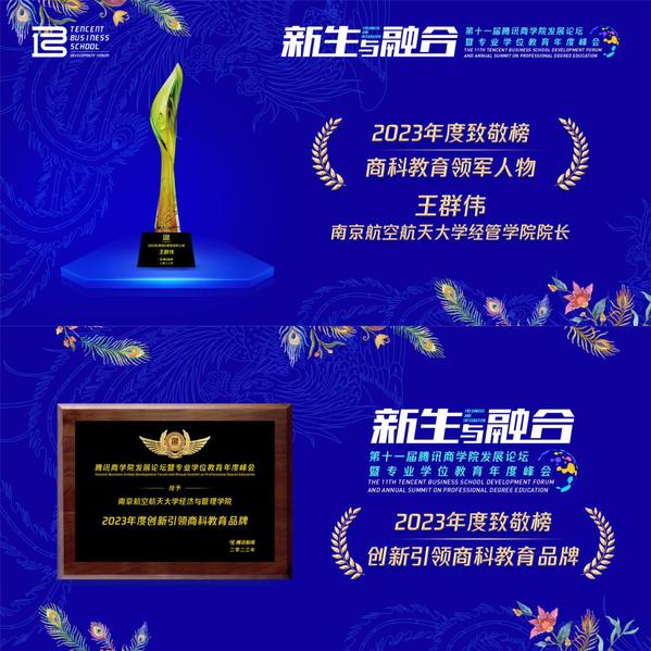 为了致敬在教育一线矜矜业业、砥砺前行的榜样人物、标杆院校以及品牌力量,第十一届腾讯商体育投注平台 发展论坛暨专业学位教育年度峰会特别评选出致敬榜单,其中体育投注平台 院长王群伟获得“2023年度商科教育领军人物”称号,体育投注平台 获得“2023年度创新引领商科教育品牌”奖项。