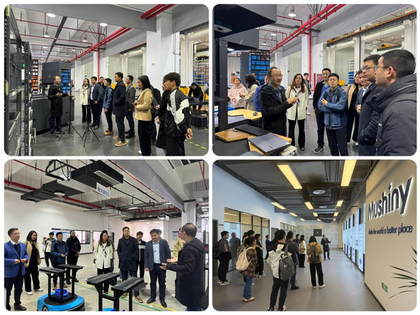 首先,在牧星机器人(浙江)有限公司首席技术官黄志明的带领下,师生共同参观了产品展示区、产品生产区、产品测试区等,深入了解了公司各类产品的适用场景及应用特点。