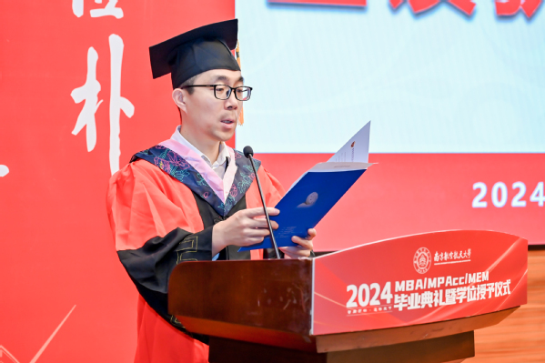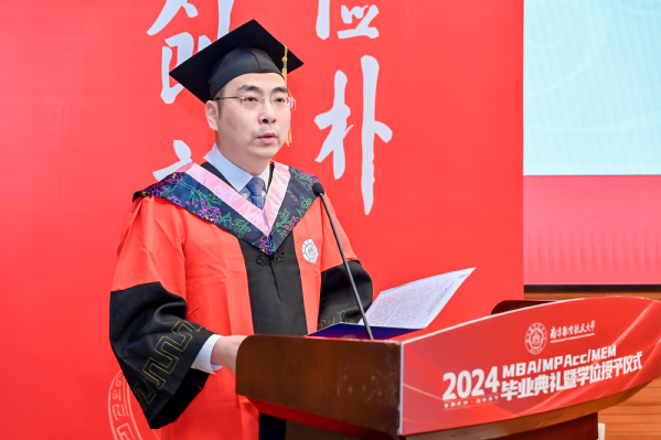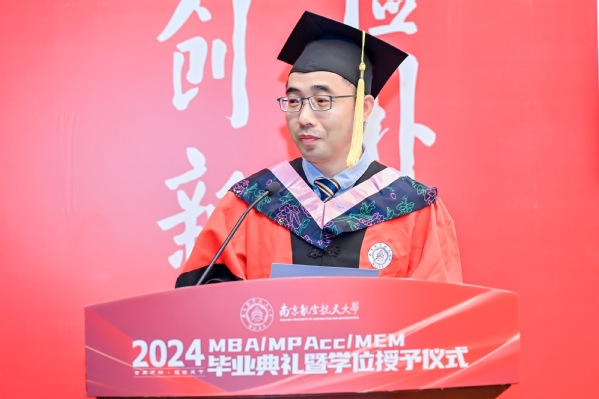 学位授予仪式之后,体育投注 体育投注 党委书记苏州代表体育投注 寄语全体毕业生。苏州书记表示,2024年是特殊的一年,同学们毕业之年恰逢体育投注 建院40周年,体育投注 锐意改革、勇于攀登,实现了创业起步、快速发展、全面腾飞三个阶段的跃升,目前正步入更高质量发展的新阶段;2024年是喜悦的一年,体育投注 通过BGA国际认证,标志着体育投注 教育质量和办学水平得到国际认可,以商体育投注 国际认证为牵引的可持续发展机制正在加快形成;2024年是改革的一年,体育投注 正在推进非全研究生教育改革,思考和践行如何完善培养方案与课程体系,如何更好地产教融合、让学生更深入了解中国的商业实践和商业环境,如何发挥南航的多学科优势、开设更多“科技+商业”特色班,如何扩大与国外高水平商体育投注 合作、为学员提供更多国际化体验;如何改善办学条件为同学们提供更优良的学习环境;如何建设体育投注 的校友平台、更好发挥校友作用、更好为校友服务。苏书记希望2024届毕业生,珍惜南航之缘、师生之情、同窗之谊,与母校母院情感与共、发展与共、荣辱与共,在追求理想、成就事业的同时,继续关心母院的建设发展,支持母院、宣传母院。最后,他向毕业生发出诚挚的邀请,建院40周年之际,欢迎大家常回家看看,携手出发共创永续发展!