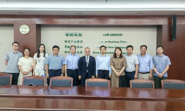 9月18日,土耳其海峡大学副校长Gürkan Selçuk Kumbaroğlu教授、深圳大学区域国别与国际传播研究院副院长孙晓奇来访体育投注 作报告并参与座谈。体育投注国际合作处处长赖际舟、副处长沈敏、经济与管理体育投注 院长王群伟、教授委员会主席周德群、副院长谢乃明、查冬兰、欧阳林寒及相关负责人陪同会见。座谈会由谢乃明主持。