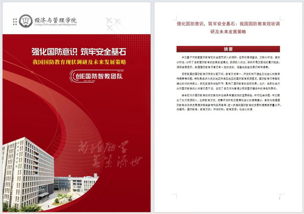 同时,依托实践调研,完成题为《强化国防意识,筑牢安全基石——我国国防教育现在调研及未来发展策略》、近两万字调研报告,对未来国防教育提出团队规划与建议。