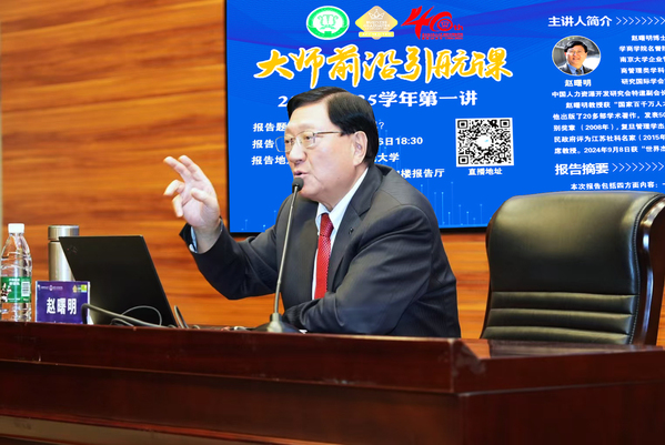 为积极探索高校人才培养模式改革,献礼南航体育投注 体育投注 建院40周年,在前期精心策划组织下,2024年10月26日晚,备受瞩目的“大师前沿引航课”在将军路校区一号楼四楼报告厅正式拉开帷幕。第一讲邀请到江苏社科名家,南京大学人文社会科学资深教授,商体育投注 名誉院长、行知书院院长赵曙明教授,作题为《如何管理自己》的精彩报告。经济与管理体育投注 2024级MBA/MEM/MPAcc学生、2023级和2024级新文科创新培优班学生以及部分参加校本培训的老师,共计400余人参加,报告内容在MBA教育中心视频号同步直播。经济与管理体育投注 党委书记苏州主持报告会。