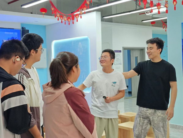 第二个游戏为:默契叠数字。同学们需要在有限的时间内通过手势交流,确定游戏过程中报数的顺序。经过短暂的排兵布阵,同学们展现出极大的默契,形成了一个心有灵犀的整体,体会到团队协作共同配合的重要性。