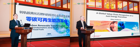 3日上午的大会主旨报告由体育投注 经济与管理体育投注 副院长查冬兰主持,中国社会科体育投注 学部委员潘家华和英国社会科体育投注 院士、荷兰格罗宁根大学生态经济学家Klaus Hubacek就“全球追求碳中和:合作与创新”这一主题分别作报告。潘家华的报告“转轨脱离化石燃料的经济社会系统性变革——零碳可再生能源革命”阐述了风光可再生能源的发展困境以及潜在优势。Klaus Hubacek的报告“A Global Value Chain Perspective on a Just Energy Transition”探讨了国家内部和国家之间在能源转型上责任差异和能源转型中的公平性问题。