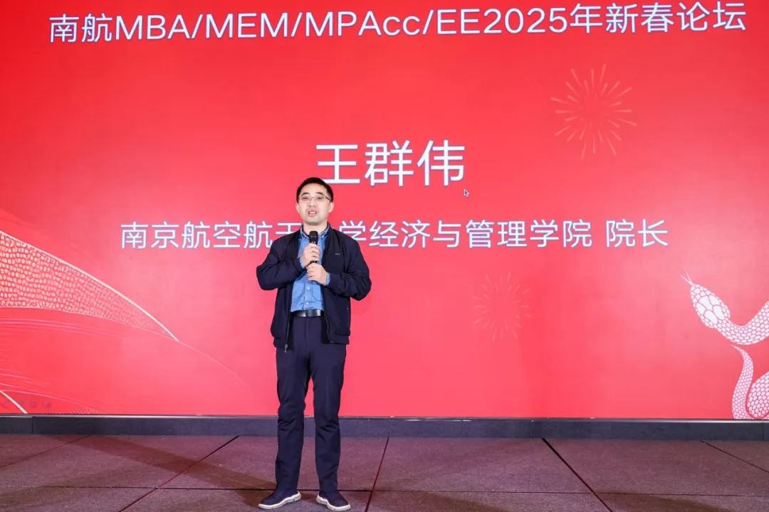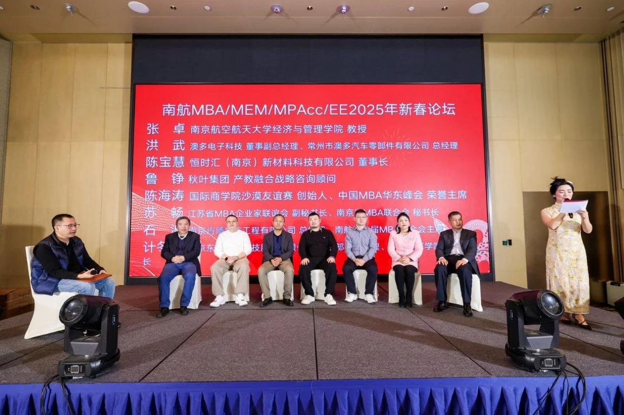 2025年1月11日,体育投注 MBA/MEM/MPAcc/EE2025年新春论坛在牛首山希尔顿大酒店成功举办。本次活动由体育投注 MBA教育中心主办,南航第十三届MBA/MEM/MPAcc联合会承办。 此次新春论坛,群贤毕至。体育投注 经济与管理体育投注 院长王群伟、副院长周志鹏,南航教务处副处长邓晶,经济与管理张卓教授,MBA教育中心执行主任杜刚、副主任张晓恒以及众多优秀教师,他们欣然赴会。南京慧和自动化技术有限公司总经理丛伟、如日创投创始合伙人雷典、秋叶集团产教融合战略咨询顾问鲁铮、南航MBA历届联合会主席、各兄弟院校MBA联合会主席或代表悉数出席。 本次论坛得到苏州高田精密技术有限公司、恒时汇(南京)新材料科技有限公司、国际商体育投注 沙漠友谊赛组委会、南京开掼文化有限公司、南京云龙酒业、南京望园文旅有限公司、河海大学MBA联合会等单位的大力支持。