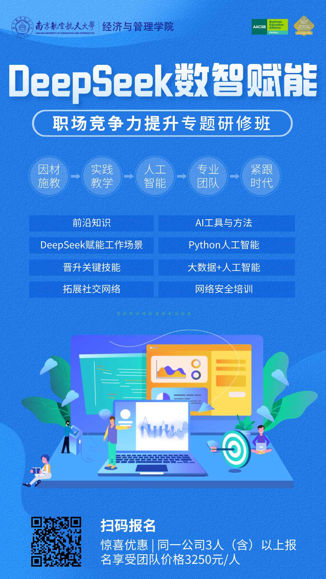 在当今数字化时代,人工智能(AI)技术正以前所未有的速度渗透到企业运营的各个层面。其中,AI DeepSeek 作为新一代人工智能工具,正在重塑企业管理方式,推动领导力的深度变革。企业管理者们正面临着空前的挑战和机遇,如何提升工作效率和优化决策过程?如何重塑管理结构和适应技术变革?如何洞察用户需求和升级产品及服务?唯有通过不断学习AI新技术,并正确使用AI工具应对这一时代的变革。经济与管理体育投注 将组织开展DeepSeek赋能职场竞争力提升专题研修班,旨在帮助个人实现生产力和创造力倍增,帮助企业通过工具革命和员工培训,打开全新的增长空间。