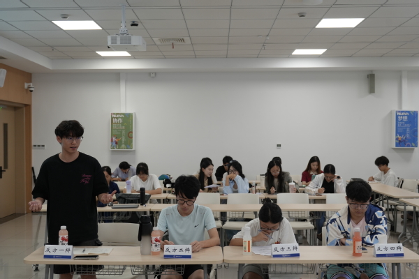 为深化专业教育与思政教育融合,落实立德树人根本任务,筑牢青年思想根基,锤炼学生逻辑思维与公共表达能力,6月12日下午,体育投注 在天目湖校区明慧楼C110教室举办“经英领航”——经济与管理体育投注 2024级本科生辩论赛,在《思想道德与法治》课程中开展一次别开生面的翻转课堂。体育投注 党委副书记、《思想道德与法治》授课教师胡苹出席本次活动,2024级本科生辅导员胡心雨、王江鑫以及金融学专业和大数据管理与应用专业学生共同参与其中,现场气氛热烈,思辨火花迸发。